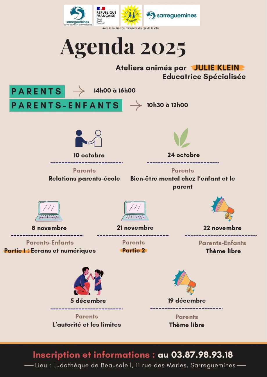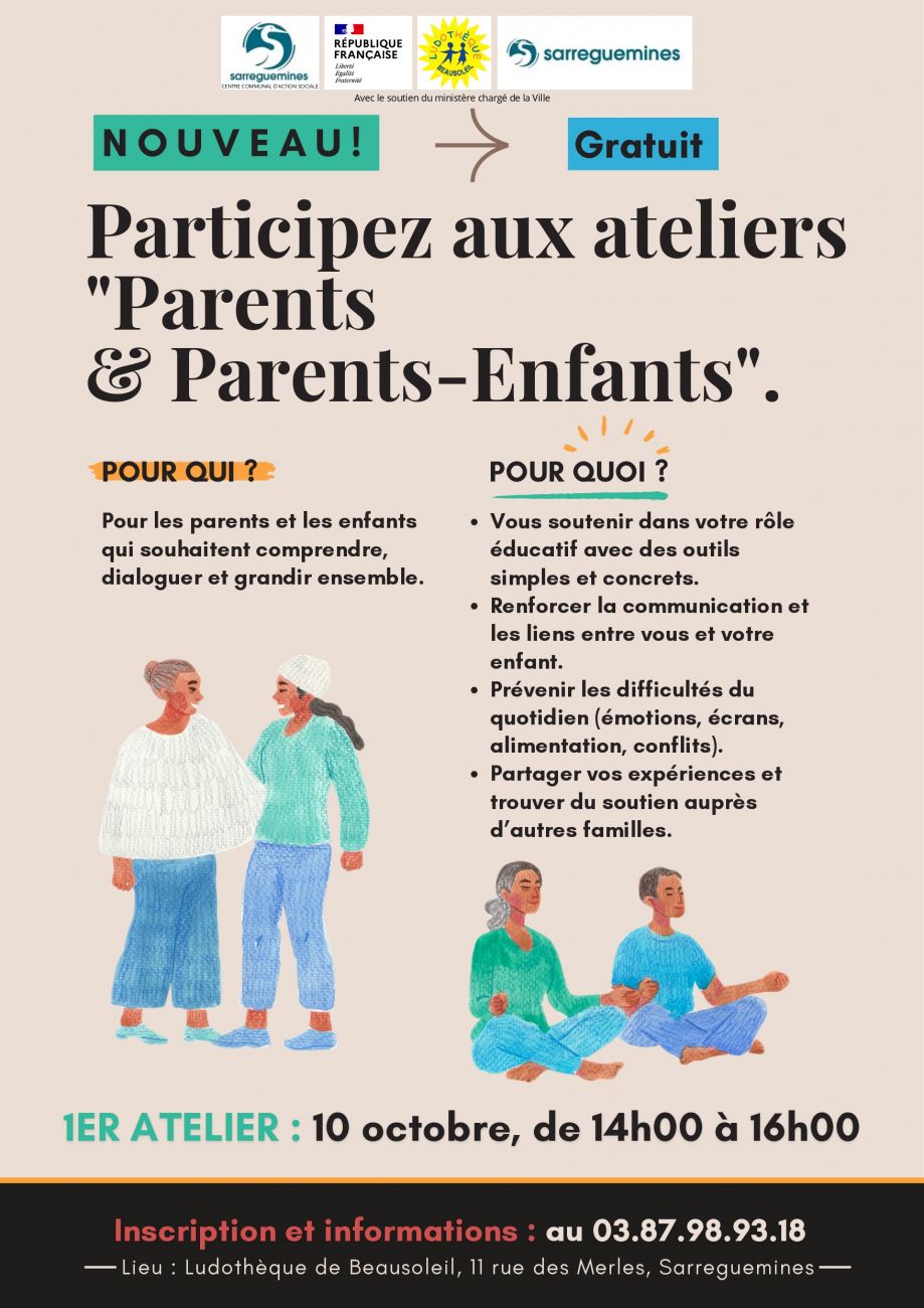 Le Centre Communal d'Action Social (CCAS) en partenariat avec la Ludothèque Beausoleil propose 7 ateliers parents et parents-enfants gratuits animés par Julie Klein, éducatrice spécialisée.