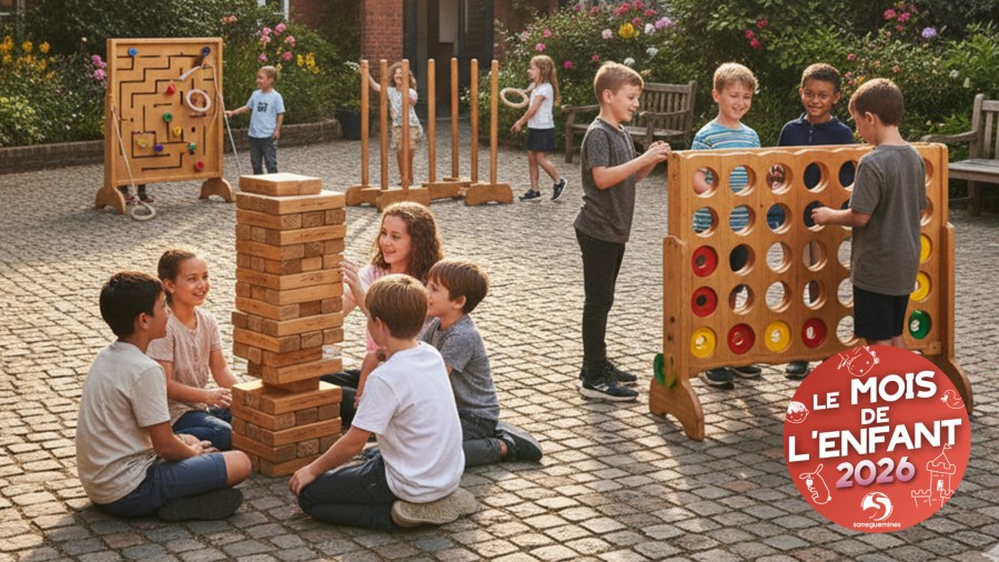 Profitez de grands jeux en bois et autres jeux en éléments naturels dans la cour éxtérieure de la Ludothèque.