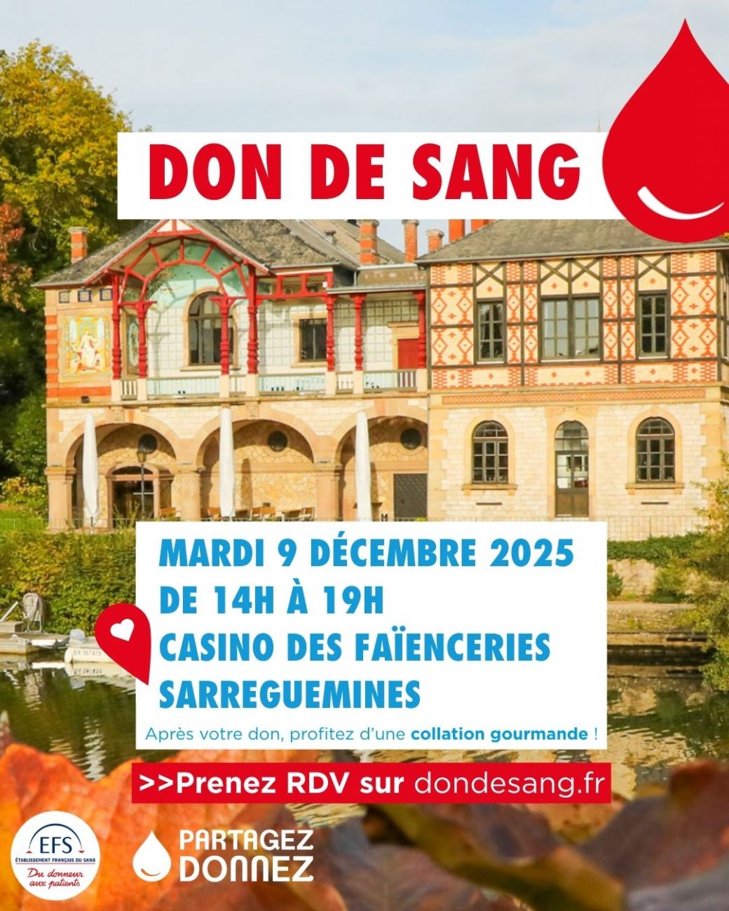 À cette occasion, une collecte de sang est organisée au Casino des Faïenceries, un lieu d’exception au cœur de Sarreguemines.